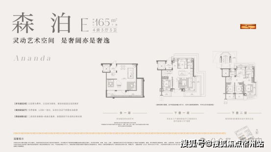 建面约165㎡下叠 预计使用率最高约148%、三向采光地下、LDBKG双入户流线、南北通透主卧套房