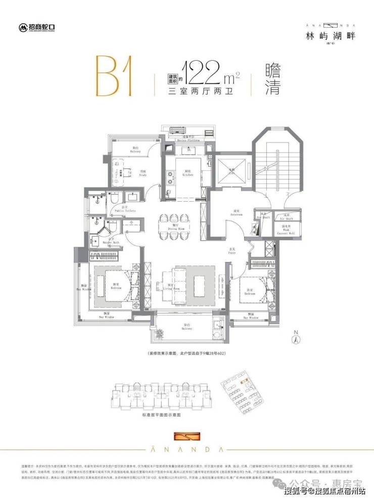 该户型分布在6号楼、9号楼、11号楼以及13号楼,其中9号楼位置最佳,南向楼间距约46米,下沉式庭院景观一览无余,下楼即达会所空间! 建面约145㎡4房2厅2卫,约98套,两梯两户招商·林屿湖畔售楼处电话☎:400-833-6309 ,独立电梯厅,层高约3.15米,其中边套附赠电梯厅面积约6.5㎡左右,中间户附赠面积约4.5㎡左右,同样也是边套户型电梯厅的可利用率更高!