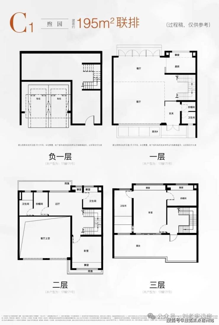 建面约132-195㎡联排别墅,一院一厅间的无界私院, 拥有前庭后院+超大挑空+南北双星空露台+室内庭院等超享空间。