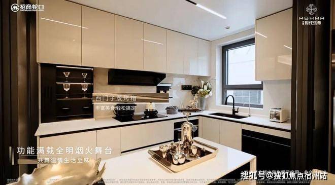 招商时代乐章售楼处预约电话:400-8894-638 ☏☏☏空间利用上匠心独运,特别配备了集实用与美观于一体的岛台,不仅扩展了操作空间,更内置收纳柜体,让厨具摆放井井有条,生活更加从容有序。