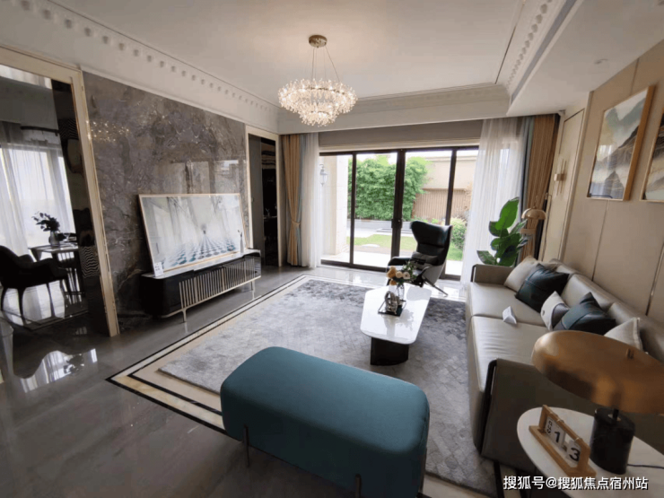 小区建筑设计以简欧风格为主, 外墙干挂大理石 ,整体是浅米黄色调。四周采用铝合金断桥双层中空玻璃采光窗装饰和庄重石柱,为别墅的豪气程度增添色彩。样板房室内装修为轻奢和简欧混搭风格,自带高级感的设计元素彰显了住户的气质。(结构形式采用砖混结构,优点是保温隔热效果好,缺点是整体性较差,不能擅自拆改墙体。)