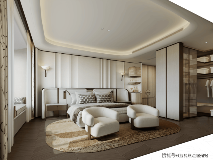 主卧大套房设计带超大主卫和独立衣帽空间,面积约50㎡,尊崇感十足!