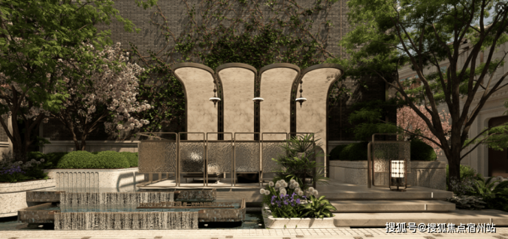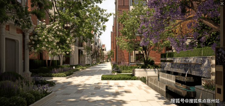 景观设计以 “历史印记 + 生态融合” 为核心,打造 “一横两纵三个轴线” 的景观格局,融合海派花镜与名贵树种,形成自然生态调节系统。提取北外滩历史元素(如新民机械厂场地印记),融入八大景观场景,实现历史记忆与现代景观的共生。植物设计打造礼仪之门、生态林境、花镜步道等多重亮点,搭配水系与景石,营造四季有景的生态氛围。别墅入户设置专属花园,高层推窗可见江景与社区景观,底层架空空间与景观轴线贯通,形成 “全域景观渗透” 的布局,让业主在居住中感受自然与文脉的双重浸润。