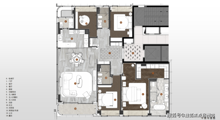 尊崇感、隐私性拉满的二胎家庭改善居住动静分区户型,三代同堂家庭居住也是极度舒适~