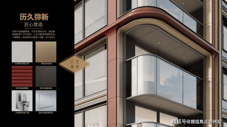 项目外立面融合历史肌理与现代美学,高层采用仿红砖陶板搭配古铜金属线条,还原北外滩地域建筑质感,大面积通透玻璃增强建筑轻盈感与采光性,顶部简约处理形成丰富形体变化,塑造沿河标杆形象。别墅复刻源福里、成厚里历史建筑肌理,严格保留文物建筑原有风貌,同时注入现代设计元素,古铜金属线条与天然石材的搭配,既延续历史文脉,又彰显精奢质感。整体外立面兼顾耐久性与美观性,实现建筑风格与周边历史风貌的协调统一,成为区域人文建筑典范。