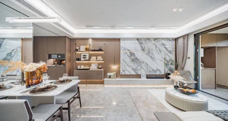 据我所知,上海能够交付大面积石材电视机背景墙的楼盘少之又少,最早是古北壹号和浦东星河湾,近几年也基本只有少量10万+的豪宅中偶尔出现。☑️☑️ 保利光合上城售楼处电话:400-1183-605☑️☑️
