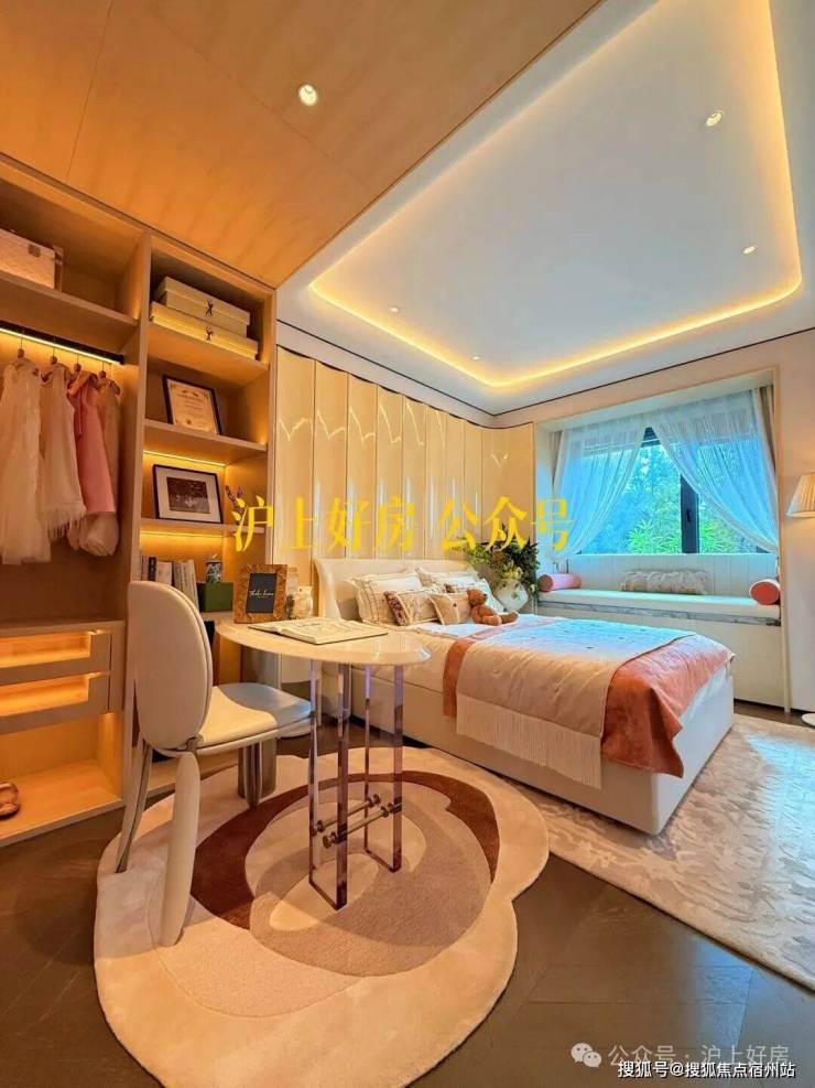 这可能是我见过 弧形元素 最多的样板间,吊顶、客厅墙面及卧室背景墙均采用大量曲面处理,涵盖木饰面与奢石等多种材质弧形工艺,即便工序复杂且成本高昂,但绿城仍坚持落实,只为业主更高级的使用体验