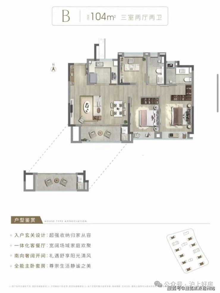 2)建面约104㎡3房2厅2卫中间套B户型