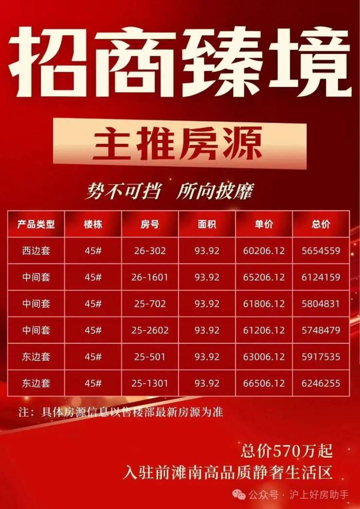 【招商臻境】三期加推建面约95-150㎡高层&叠墅,首开124套房源,其中95㎡高层3房102套全开,总价约530万左右,148-150㎡叠墅22套,上叠约1300万起,中平约1120万起,下叠约1350万起!正在认购中,前期少量建面约89-148㎡房源在售,直接认购!