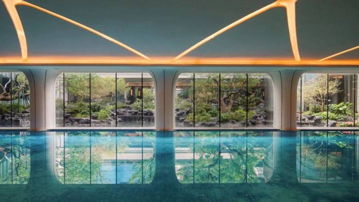 项目标配下沉式庭院会所和恒温泳池,满足业主们的会客、健身、娱乐需求,同时利用建筑内部的架空区域,以全龄社区为出发点,打造容纳多元生活的社区中心。