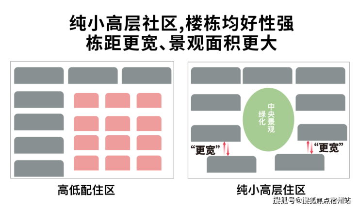 首先, 本项目容积率1.8 ,市面上大部分开发商面对这样的容积率更倾向于做利润更高的高低配。但本项目却选择了清一色的小高层,那有什么区别呢?这张示意图会告诉你: