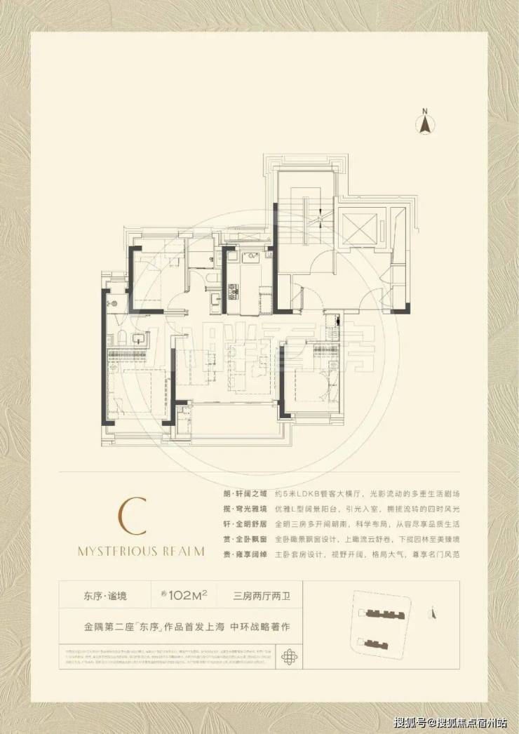 尤其项目建面约102㎡的户型,格局上超越了传统意义的三开间朝南,客厅面宽高达约5米外接差不多尺度的阳台,真正实现3.5开间,让业主起居之间沐浴更多阳光的同时,公区尺度感也直逼其他项目建面约100-120㎡户型。