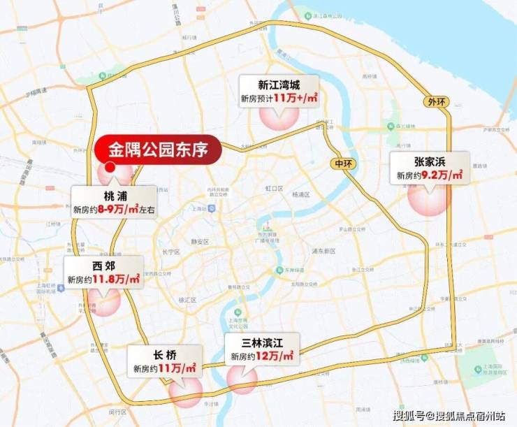 展开地图我们来看目前中外环板块的房价格局,几乎全线11万朝上,部分板块甚至12万朝上。