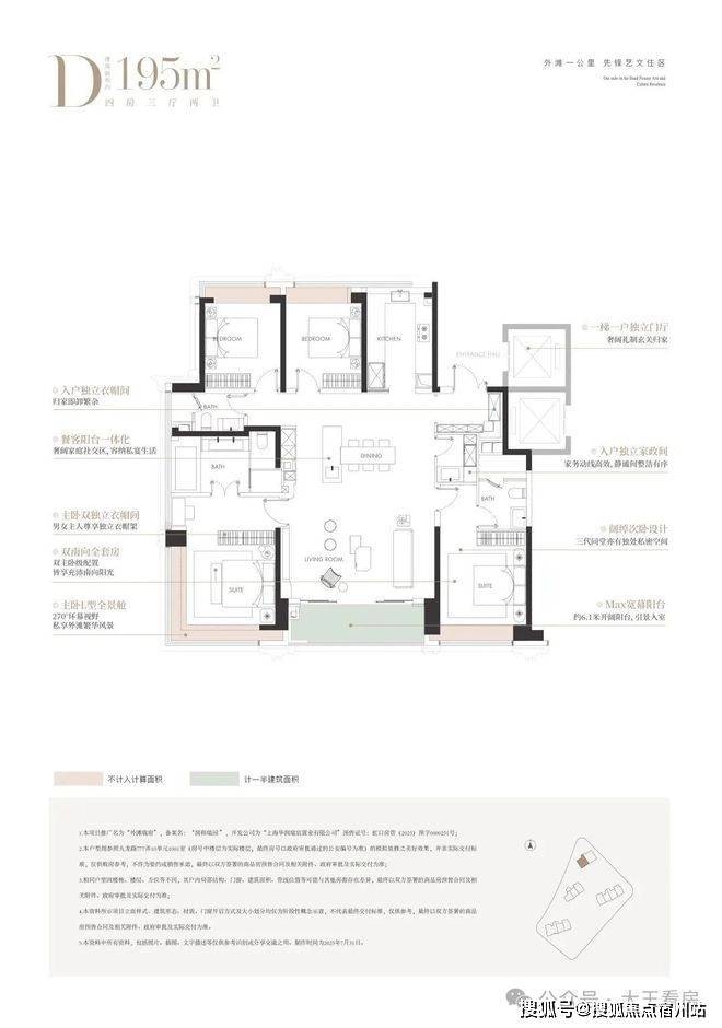 大横厅尺度感奢阔,尊享私梯入户,隐私性满分!✅✅华润外滩瑞府售楼处电话:400 - 882 - 4258✅✅三间卧室朝南设计的平权户型,老人、小孩均可享受南向采光;厨房转角窗、主卧套房、北向书房均配置270度转角飘窗,景观视野相当不错!次卫四分离设计,相当人性化~