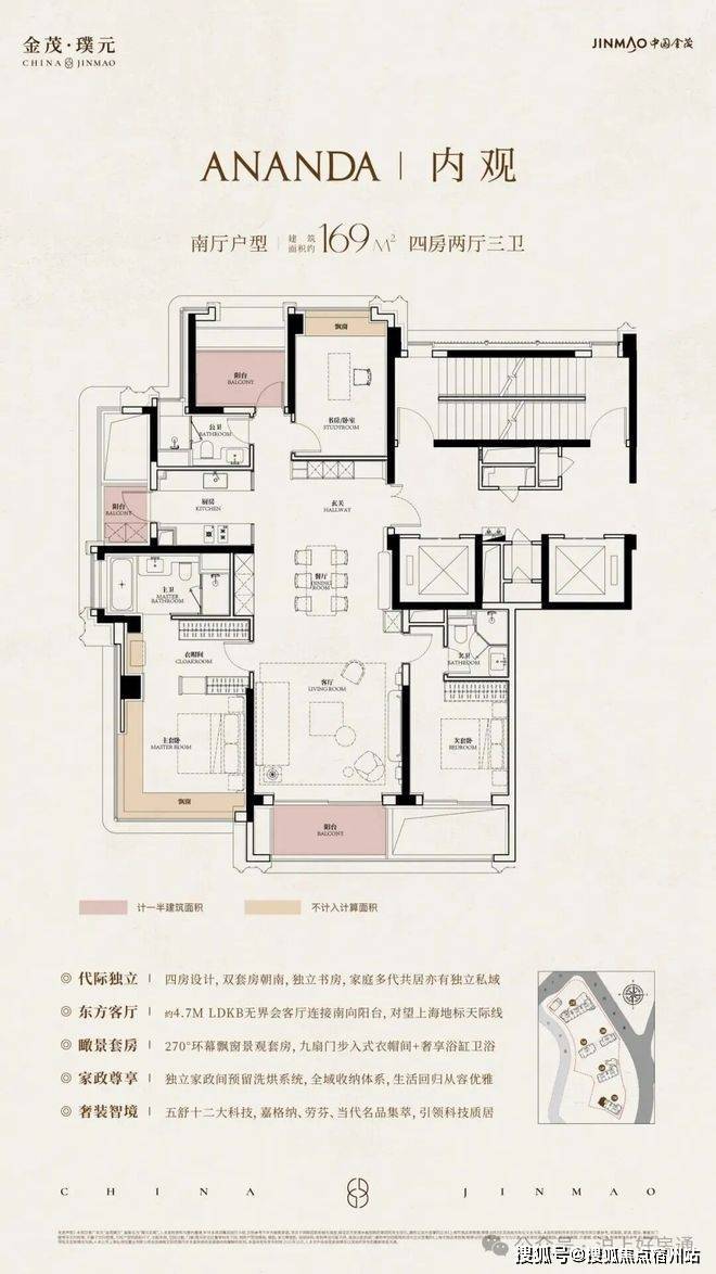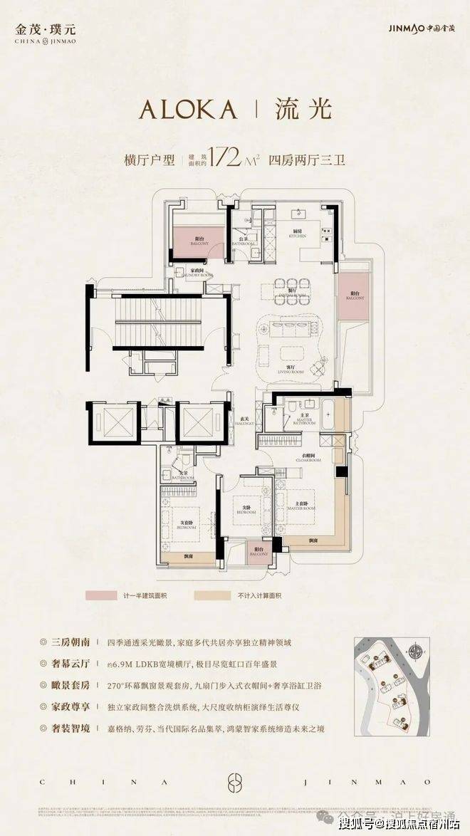 在建面约172㎡户型中,✅✅金茂璞元售楼处电话:400 - 8824 - 258✅✅我们可以看到金茂对“三代同堂”生活方式的深刻理解!