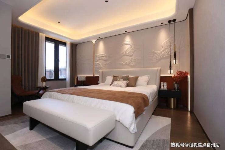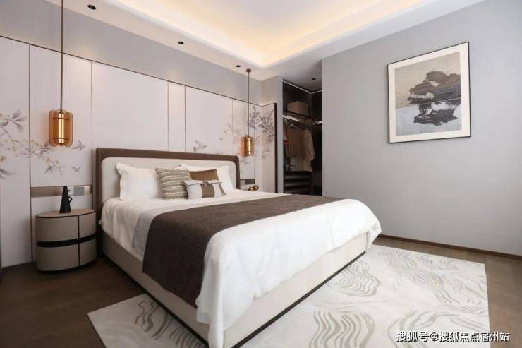三层称得上是主人独立的“休憩行宫”了 , 一整层都是主卧!就寝区、衣帽间、卫浴间应有尽有,而且尺度还很舒适。