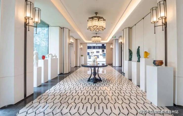 归家礼序 :项目打造了五进式归家礼序,地上、地下双层入户精装大堂,每一处细节都彰显着尊贵与品味 。地下精装大堂,开阔的挑高空间,配置自然采光井以及专属的等候区,让业主感受到如同酒店式首层大堂般的尊贵礼遇。地上精装大堂的设计同样出彩,地面的石材拼花造型与墙面的石材背景相得益彰,将静奢海派的艺术风格展现得淋漓尽致 。