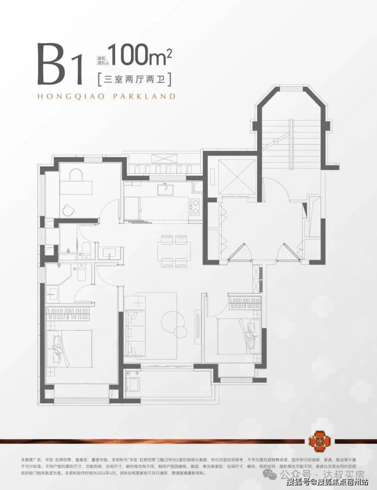 建面约100㎡3房2厅2卫