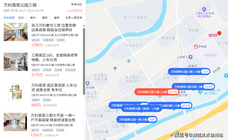 说这话是有依据的,万科翡翠公园就是一个典型案例,被张江园区包围,是张江高知人群改善置业的香饽饽,你再看一下它现在的价格: