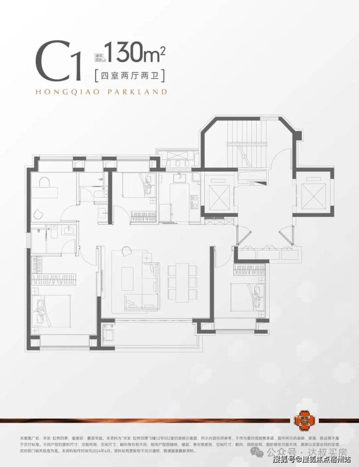 建面约130㎡4房2厅2卫