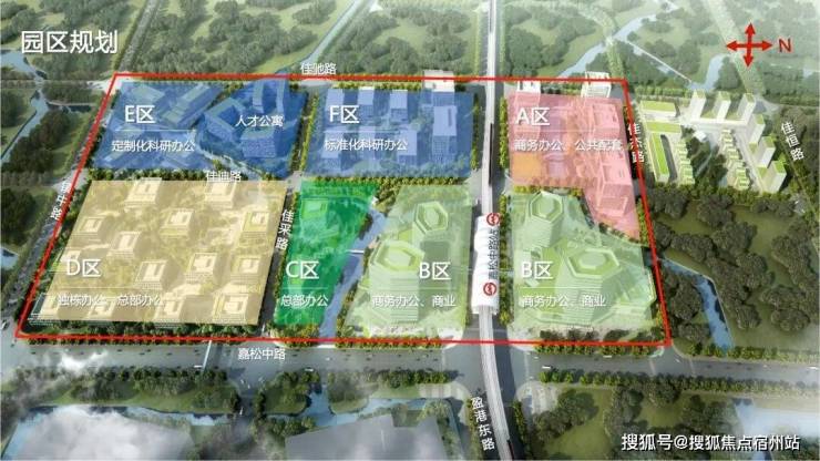 市西软件园核心位置就在嘉松中路站两侧,这里正打造 漕河泾赵巷科技绿洲,一共六个地块