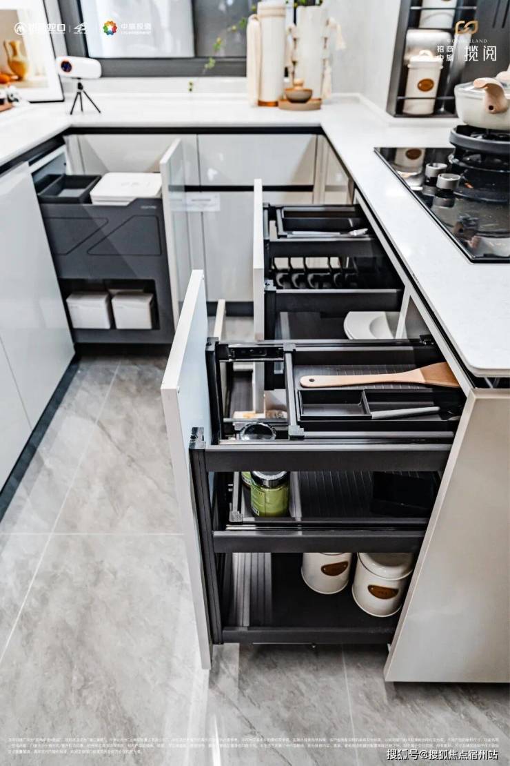 与此同时,项目在智能化方面下足了功夫,油烟机感应触控、燃气灶具有防干烧功能,60秒干烧会自动熄火关气,智能化的同时更注重居家的安全。