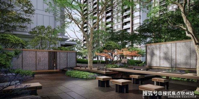 雅致石院与中庭古树相映,植物组团错落有致,营造出清逸山水园林之美,唤醒人们对林荫树下休憩闲聚的场地记忆。
