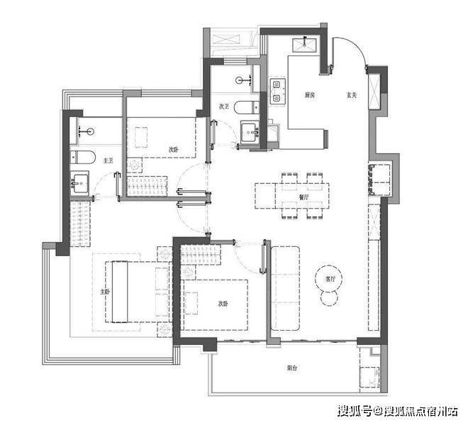 建面约100㎡3房2厅2卫户型图