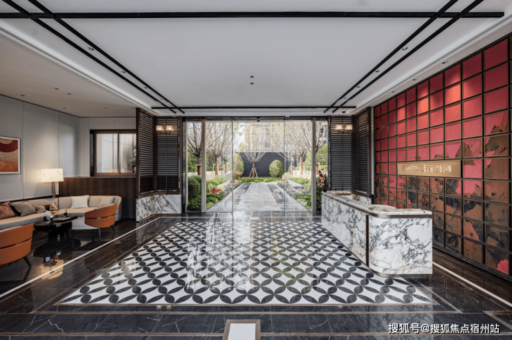 双臻装入户大堂,对标高规格酒店大堂,为居者打造身份的象征,海派拼花地砖散发沉稳低调的典雅质感,大堂内部潘多拉岩板结合古铜色线条,细微毫末之处也足见考究工艺,实现了对于家的所有质感期许。