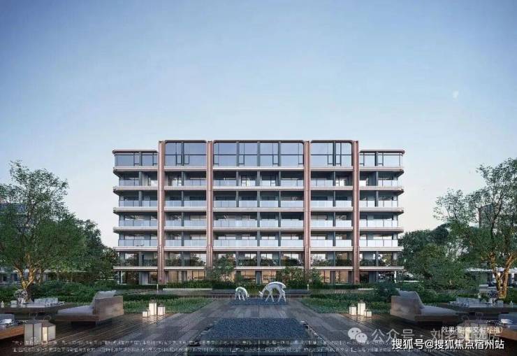 在选材上,项目采用米色石材、铝板和金属镶框进行多元混搭,重点刻画单元入口、入户大堂等细节,质感非常丰富。尤其艺术感的弧形镜面立面,与门前蜿蜒的水岸风光相呼应,让建筑仿佛拥有了呼吸感和浪漫的情绪。