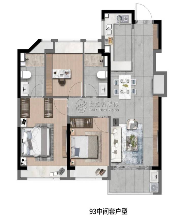 高层建面约97㎡3房2厅2卫