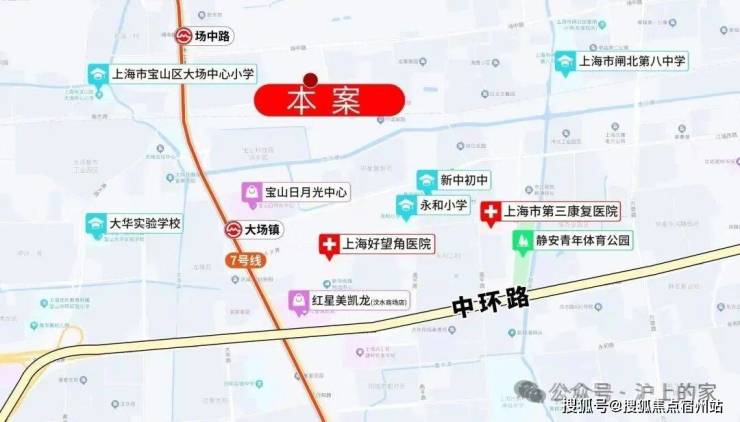 项目位于宝山区大场板块,地处界华路和场中路交界处,位置十分优越,距离7号线场中路地铁站步行最多也就500米左右,然后沿着7号线,两站入中环,三站进市区,六站就进入核心内环了。