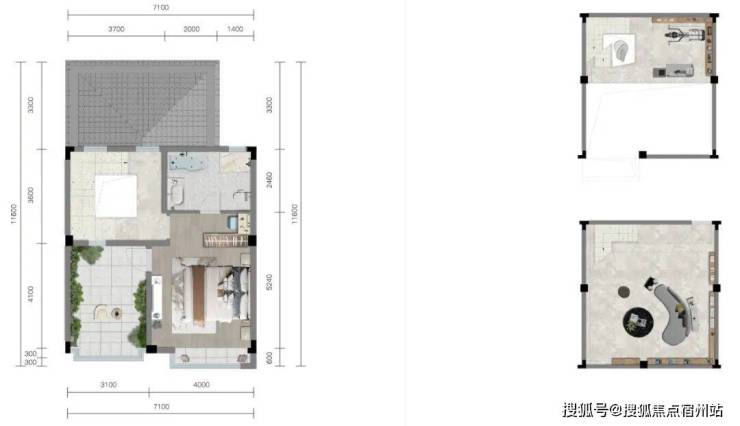 相比一些紧凑的微墅,这款户型的尺度更显宽裕。