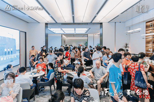活动还没开始,售楼处就集结了一大批看房的意向客户,沙盘前、聊天区人头攒动,现场销售员解说得口干舌燥,完全接待不过来。