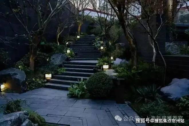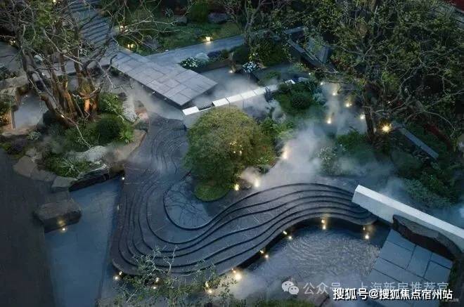 · 林涧溪谷 :这片下沉秘境中,约300㎡镜面水畔点坐落其间,夜晚则有 伊朗白雪荧玉石 灯照亮归途,成为与知己畅谈、与家人共聚的隐奢客厅