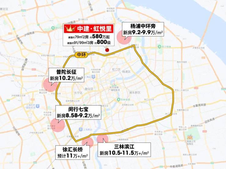 同环线普陀长征新房均价 10.2万/㎡;闵行七宝也已 8.58-9.2万/㎡
