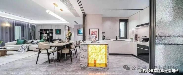 5. 整体采用了海派的装修风格,例如更耗时更费钱的带弧度的半圆形吊顶!以及当大部分项目还在用长虹玻璃时, 招商臻境 在厨房的三轨道移门处使用了水波纹玻璃,更具奢华感!这样的细节上次还是在看 3000万级别 的豪宅时才看到!