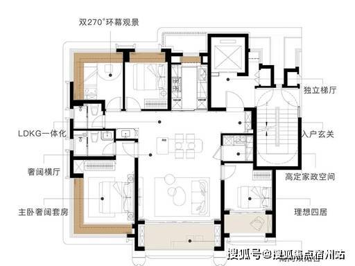 总价约 1429 万起,均价 13.5 万 /㎡,采用 “飞机户型” 设计,三面采光,通透舒适。一梯一户 + 独立采光电梯厅设计,私享专属空间,提升居住私密性与尊崇感。全屋飘窗全赠送、双南阳台半赠送,得房率高达 93%-94%,空间利用率领先市场同面积段产品。客厅面宽超 4 米,主卧套房设计,带独立卫生间与衣帽间,布局合理,功能分区明确,兼顾居住舒适度与实用性。