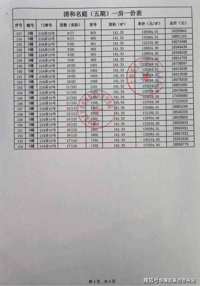 最新一房一价表公示 :