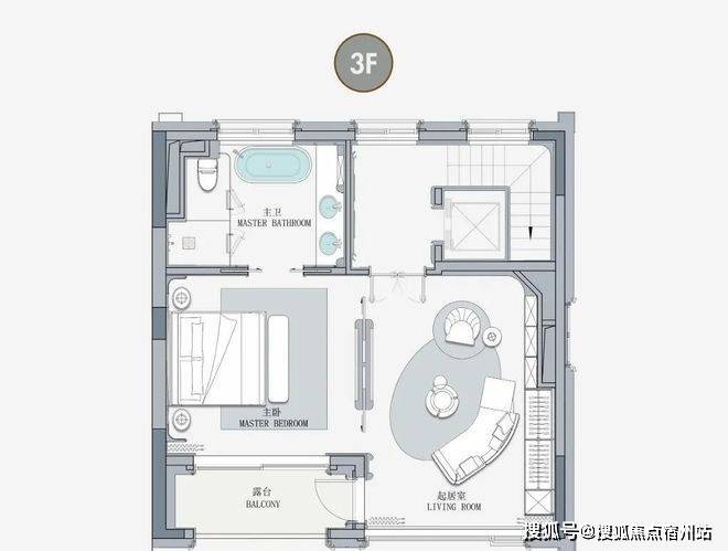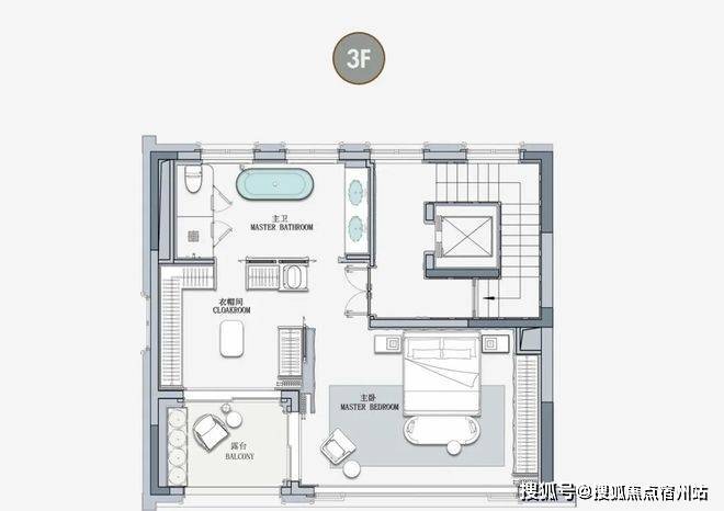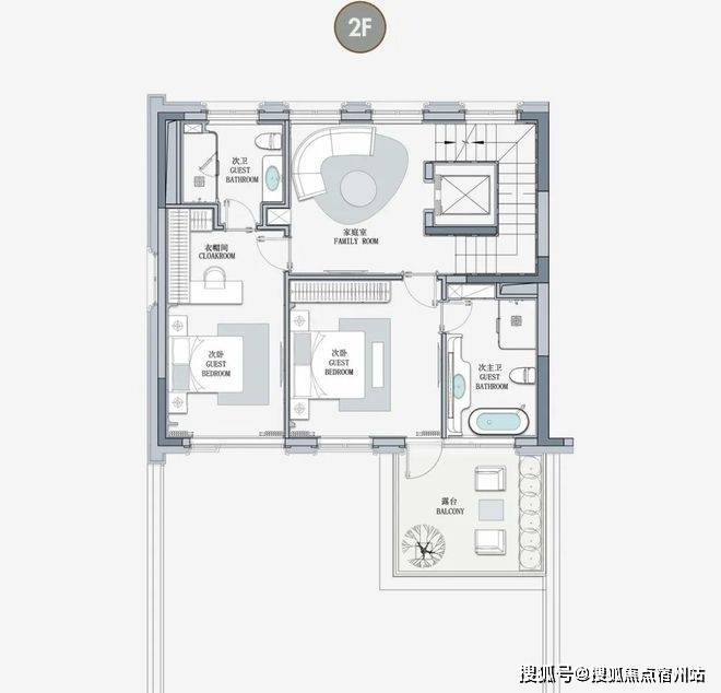 客厅互通,彰显家族生活的轩阔厅堂,2F家庭层,儿女的幸福与陪伴皆在左右,3F总裁套房式Penthouse,用具象的尺度描写人生成就的高度。