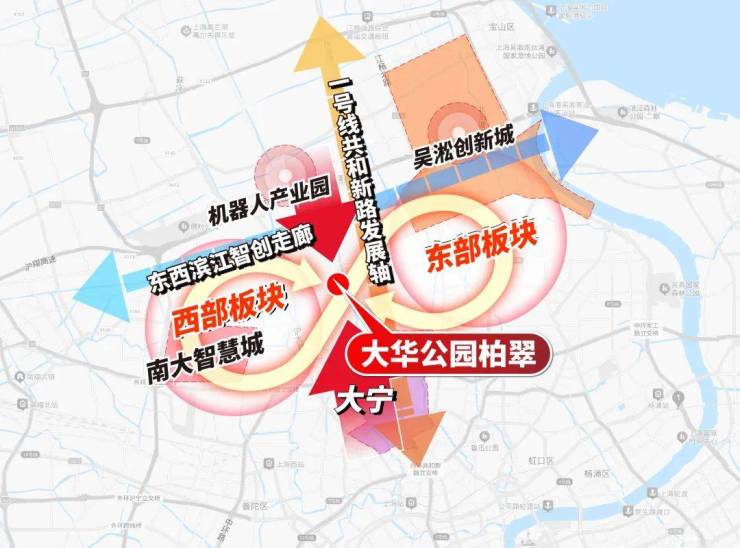 以大华公园柏翠为核心,周边聚集了宝山最重要的科创产业、资源能级。