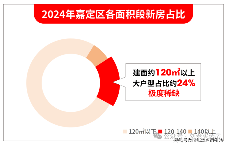整个嘉定目前还是以百平米左右3房为主力供应段, 建面约120㎡以上的产品去年仅占比约24%,极度稀缺