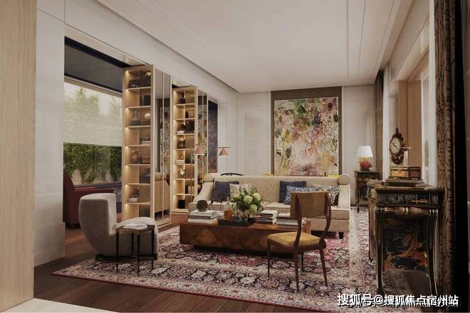 正式的大沙发区域,灵活散座区域,家具注重收藏种类多样性,中式圈椅,西式小沙发,灵活移动,根据需求可聚可散。天潼198售楼处电话:400-8266-670☎️☎️✅✅手工编织的复古羊毛波斯地毯,用植物和矿物天然染料来进行染色,拥有了抗衡时间侵蚀的美,更增加了收藏的丰富性,是高品味的体现。天潼198售楼处电话:400-8266-670☎️☎️✅✅