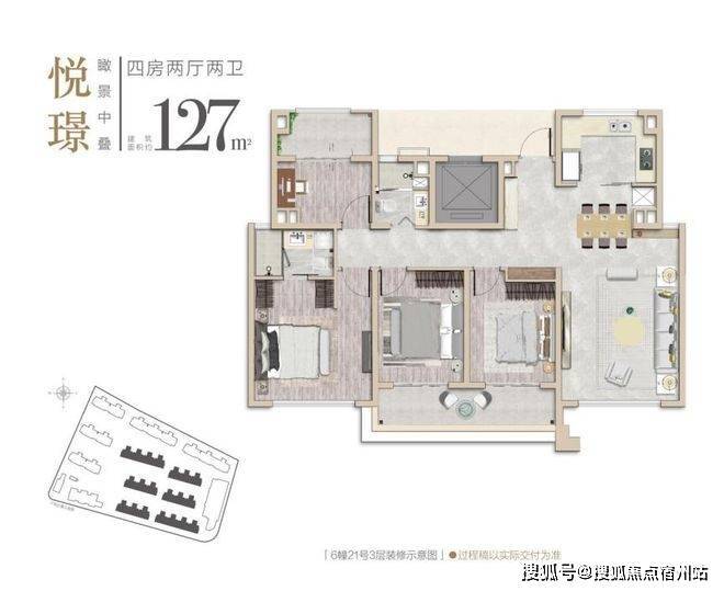 这个四房虽然建面只有127㎡,但因为是5层叠墅的高得房率,以及室内空间的高效利用,其功能和尺度感,给人的感觉十分惊艳。