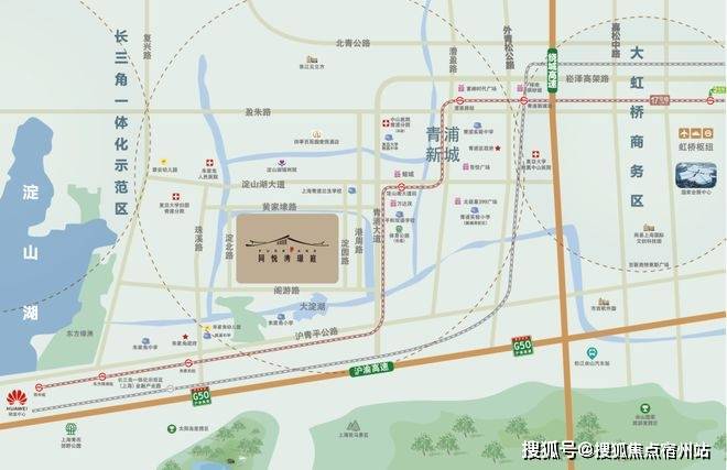项目与17号线淀山湖大道站直线距离约2.5公里,通过17号线可直达虹桥商务区,并且能无缝换乘2/10号线,快速接驳上海市中心。