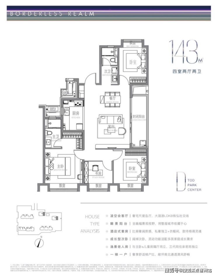 建面约143m²户型特点:超大画幅的岛厅,大洄游LDKB公区格局,IMAX级景观阳台,超奢观景视野,一梯一户尊享级梯户比,南北通透,尊崇感十足!