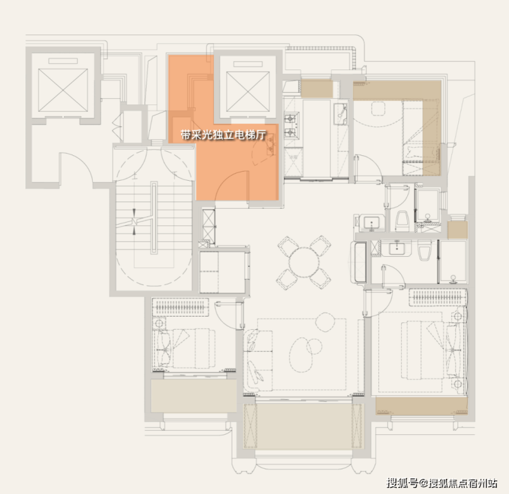 第一个就是非常明显的新规逻辑下的「两梯两户」,北侧不再有连廊,电梯厅出来就有一个相对独立的使用空间,甚至这个电梯厅都是全明带采光的。上海杨浦保利·外滩曜售楼处电话/地址☎:400-833-6309(预约热线)√√