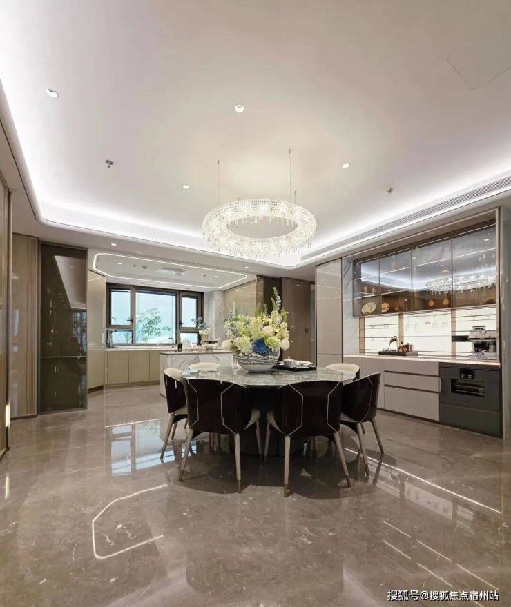 超30㎡餐客方厅采用一体化布局,巧妙地连接南向阳台、U型厨房,形成极佳通风采光通道。轻松容纳6人餐桌,无论是三代同堂的日常用餐,还是周末的家庭聚会,都能从容应对。