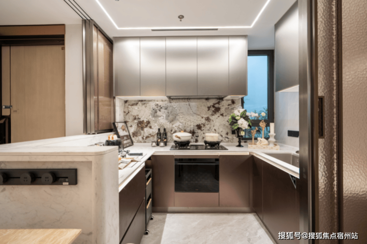 厨房: 集成方太净洗中心与嵌隐升降烟机,将清洗与净烟效率最大化。