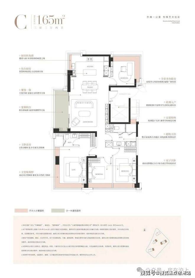 因此,外滩瑞府在建面约165㎡户型中创新推出三四房灵活定制体系。